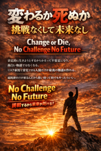 変わるか死ぬか 挑戦なくして未来なし 今日は【Change or Die,No Challenge No Future】というお話です。 先日こんな言葉を見つけました。 【Change or Die,No Challenge (続きを読む)
