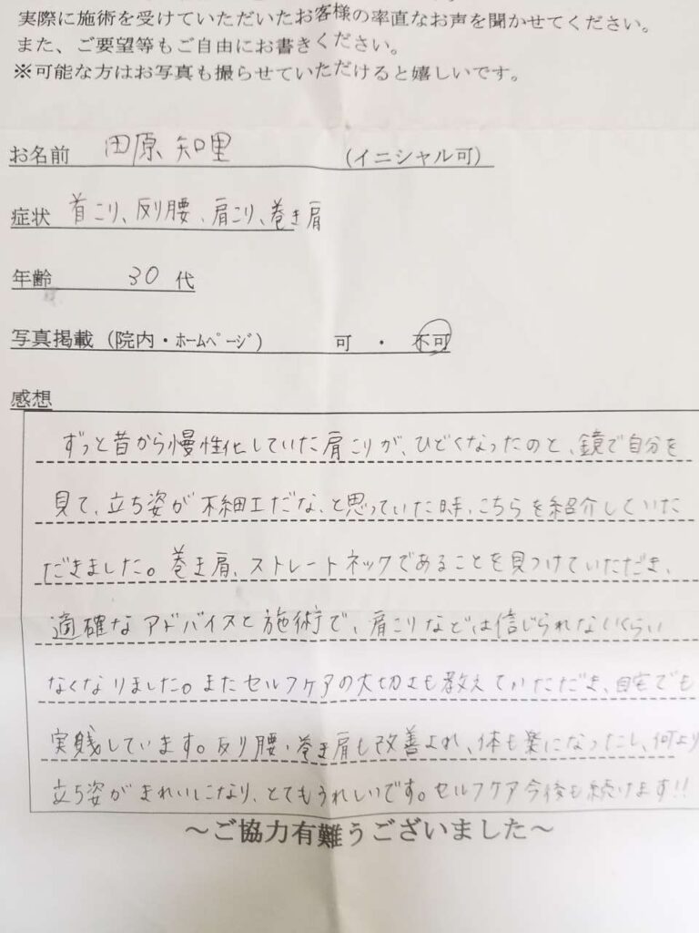 その他気になっていた肩・首のこりも改善に向かっております。
